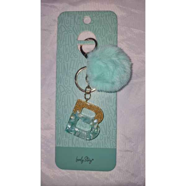 Aqua green keychain with pompom.