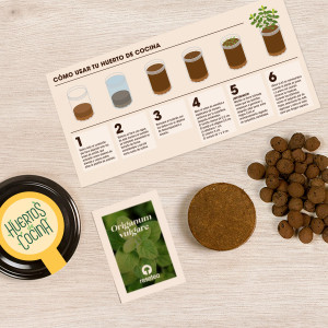 Contiene una maceta biodegradable, una pastilla de sustrato y semillas de albahaca.