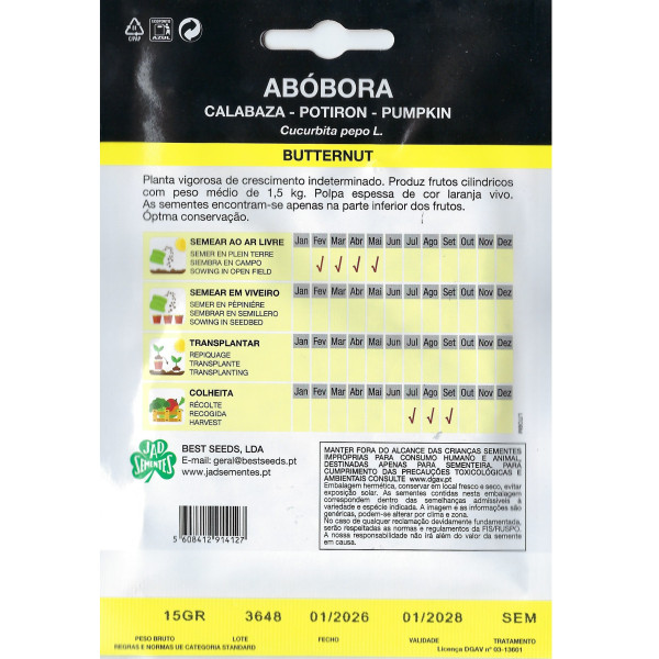 Cultiva la popular Calabaza Butternut, una variedad muy productiva que produce frutos alargados con piel beige y pulpa de color naranja intenso, dulce y cremosa.