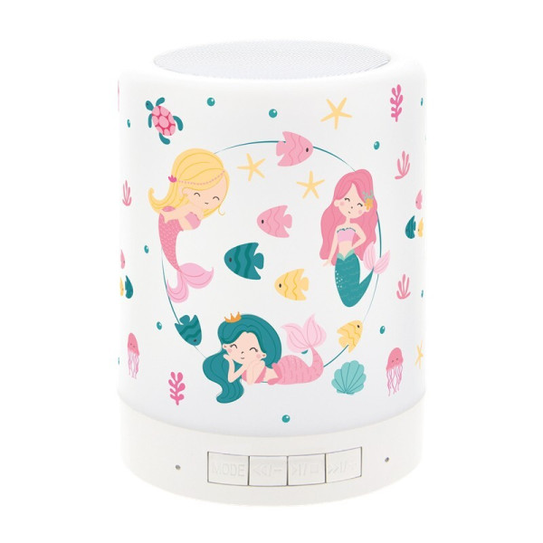 Lámpara de luz nocturna Aurea kids, se puede conectar a cualquier dispositivo mediante Bluetooth. Control total sobre tu celular o lámpara, pudiendo saltar canciones, pausar y aumentar o disminuir el sonido.