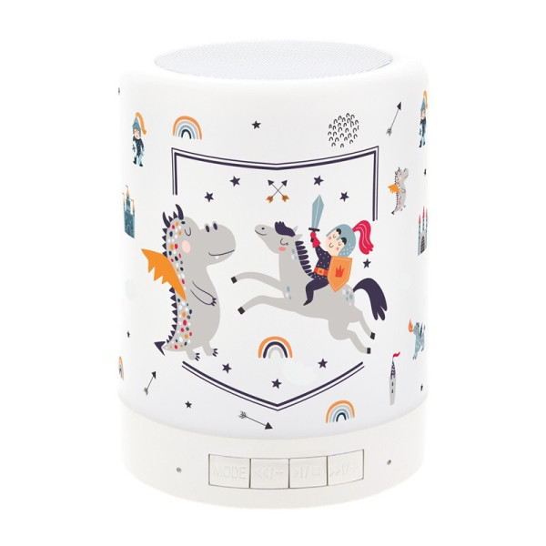 Lámpara de luz nocturna Aurea kids, se puede conectar a cualquier dispositivo mediante Bluetooth. Control total sobre tu celular o lámpara, pudiendo saltar canciones, pausar y aumentar o disminuir el sonido.