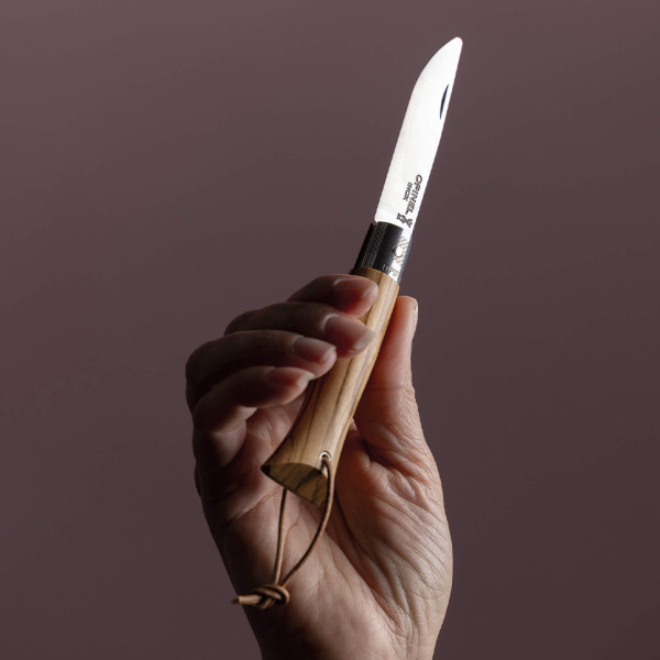 El néo6 combina tradición e innovación: su mango de madera de olivo barnizado, con vetas únicas y tonos cálidos, confiere encanto y autenticidad a cada pieza.