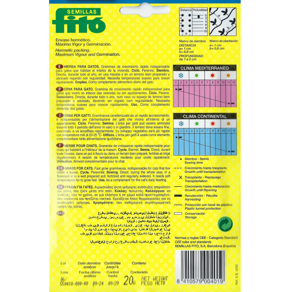 Cultiva hierba gatera fácilmente con estas semillas de alta calidad. Una hierba de rápido crecimiento, ideal para gatos de interior.