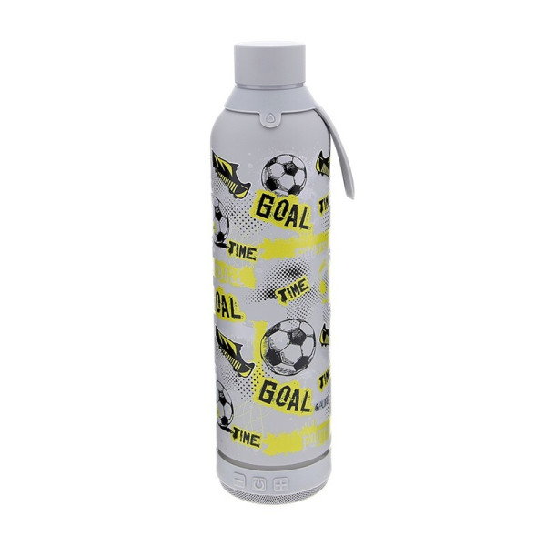 Botella termo de 600 ml con altavoz inalámbrico que se puede conectar a cualquier dispositivo bluetooth. Incluye cable de carga USB y USB-C. Mantiene el frío durante 24 horas y el calor durante 12 horas.