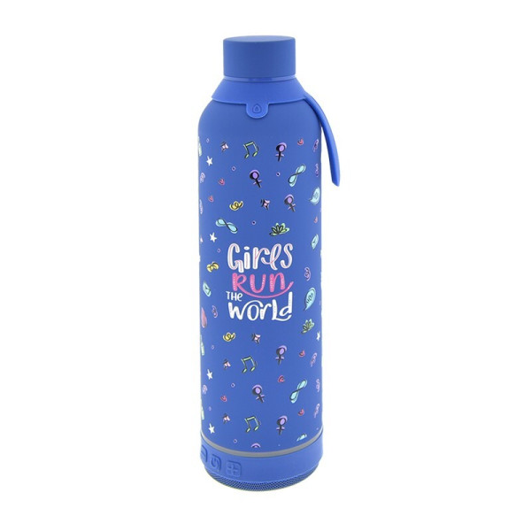 Botella termo de 600 ml con altavoz inalámbrico que se puede conectar a cualquier dispositivo bluetooth. Incluye cable de carga USB y USB-C. Mantiene el frío durante 24 horas y el calor durante 12 horas.