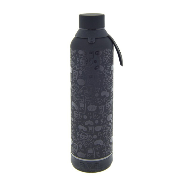 Botella termo de 600 ml con altavoz inalámbrico que se puede conectar a cualquier dispositivo bluetooth. Incluye cable de carga USB y USB-C. Mantiene el frío durante 24 horas y el calor durante 12 horas.