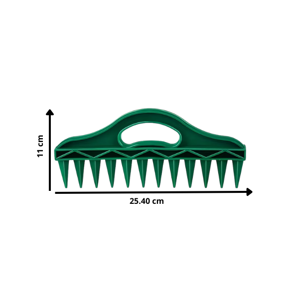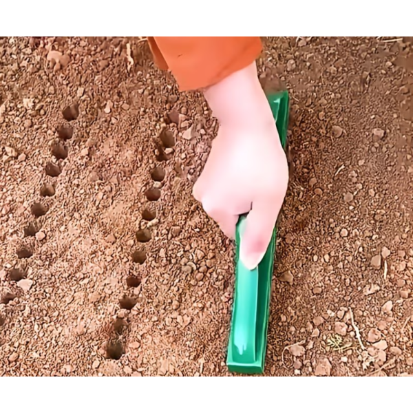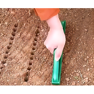 Diseñado para perforar la tierra de forma rápida y uniforme, permite crear varios agujeros alineados simultáneamente, asegurando un espaciado regular entre las semillas. Ideal para acelerar el proceso de siembra y promover un crecimiento más organizado del cultivo.