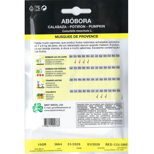 Sementes de Abóbora Musquee de Provence — variedade tradicional de grande calibre, muito doce, aromática e com excelente conservação.