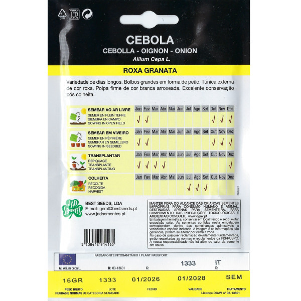 Sementes de Cebola Roxa Granata — variedade de dias longos, bulbos grandes e excelente conservação.