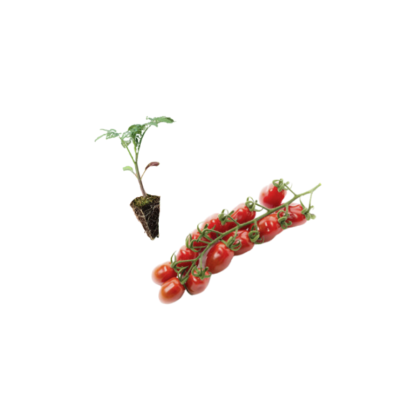 Leve para casa uma Planta de Tomate Cherry Pêra já desenvolvida, pronta a plantar na sua horta, jardim ou estufa. Esta variedade destaca-se pelo seu formato alongado, sabor doce e excelente produtividade.