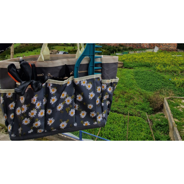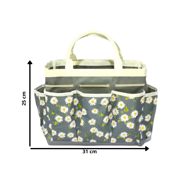 Com vários bolsos exteriores, permite manter as ferramentas essenciais sempre à mão — tesoura de poda, luvas, sachola, sementes ou etiquetas. As alças resistentes facilitam o transporte entre canteiros, vasos ou estufas.